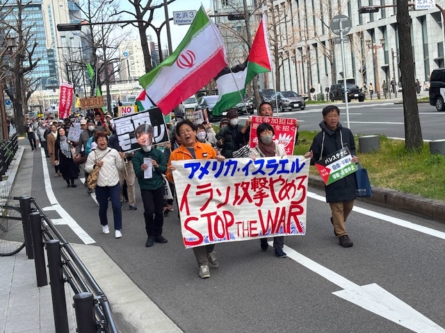 3/20(金・休)13時~ ZENKO呼びかけの「イラン攻撃、今すぐヤメロ!」デモに150人。