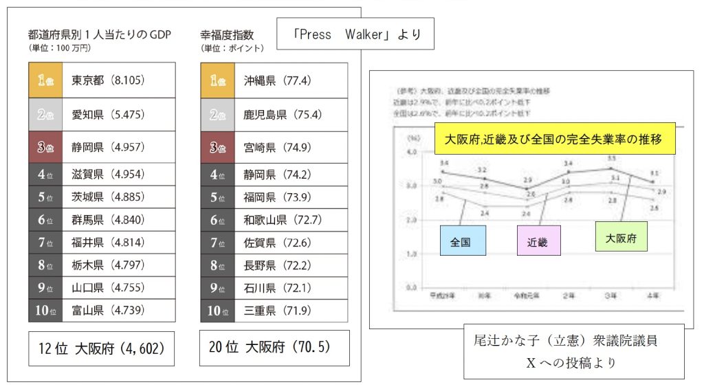 大阪経済は低迷し続けています。「成長を止めるな」と言う維新の成長戦略の失敗は統計上でも明らかです。