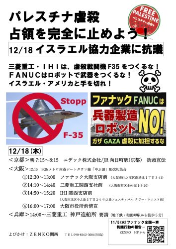 ❷ 12/18(木)ZENKO関西 BDSイスラエル協力企業へ要請行動
